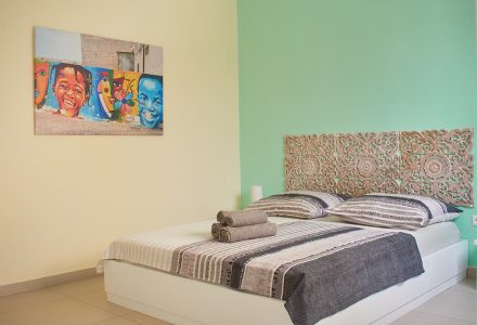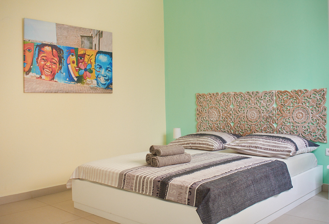 2 guests – 1 extra bedroom with queen size bed – 1 bathroom – quiet inner yard – access to roof top sun terrace